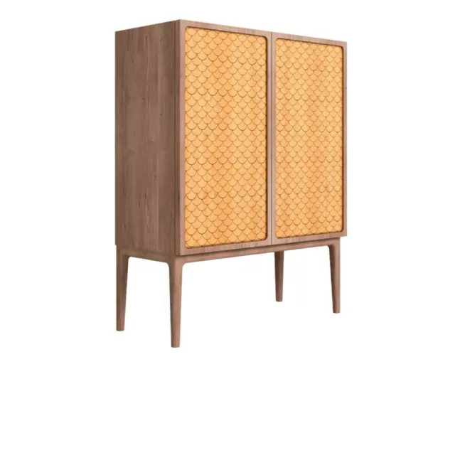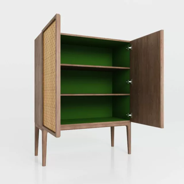 Portas com acabamento artesanal de couro. Fundo interno na cor verde.
