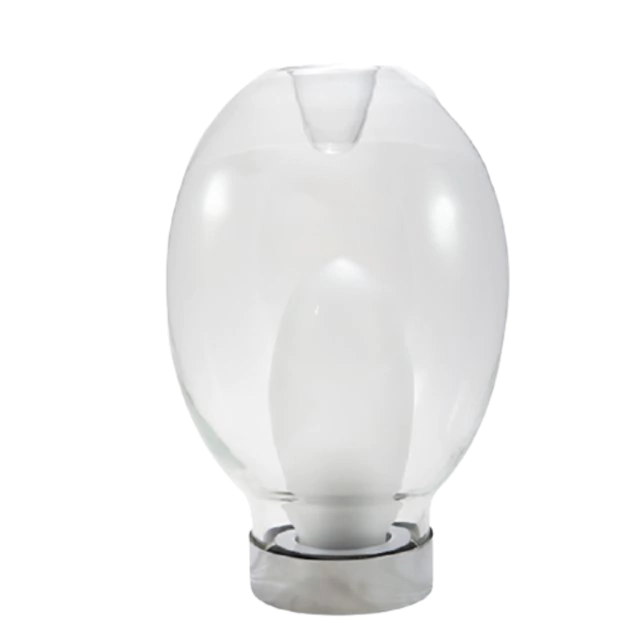 A própria expressão da delicadeza e da sofisticação. Mistura a transparência da parte externa com a opacidade do vidro na peça que oculta a lâmpada.