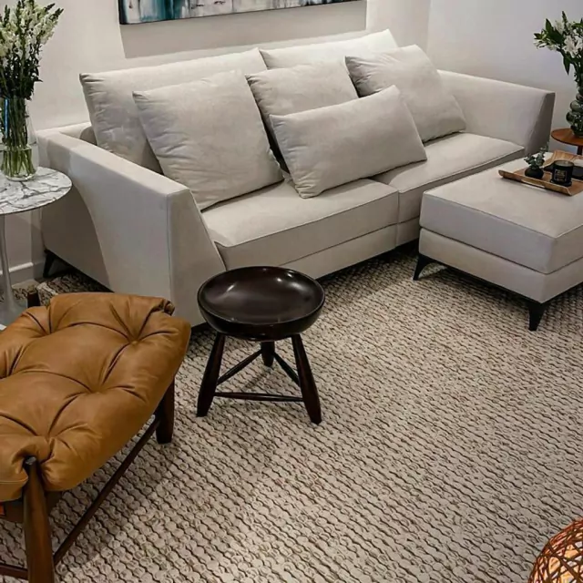Chateau é um sofá modulado com váriasopções de medida do assento e de chaise. Os módulos do sofá podem ter um braço direito ou esquerdo, dois braços, sem braços, chaise e puff. Almofada de assento fixa, de encosto maior e lombar soltas.