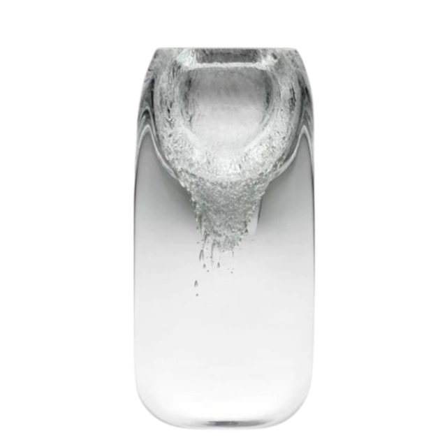 Considerado fisicamente um líquido, o cristal nunca deixa de fluir mesmo em sua aparente forma solidificada. Uma de suas qualidades é a capacidade de receber e transmitir a luz. A peça representa o momento do sopro aplicado a um bloco de cristal maciço e revela a memória da alta temperatura.